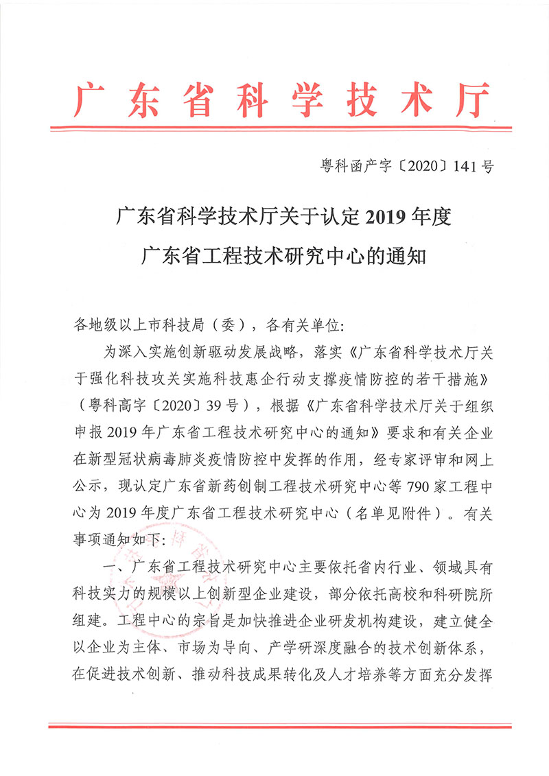 蓝鲸体育直播机械制造有限公司于2019年认定为广东省工程技术研究中心